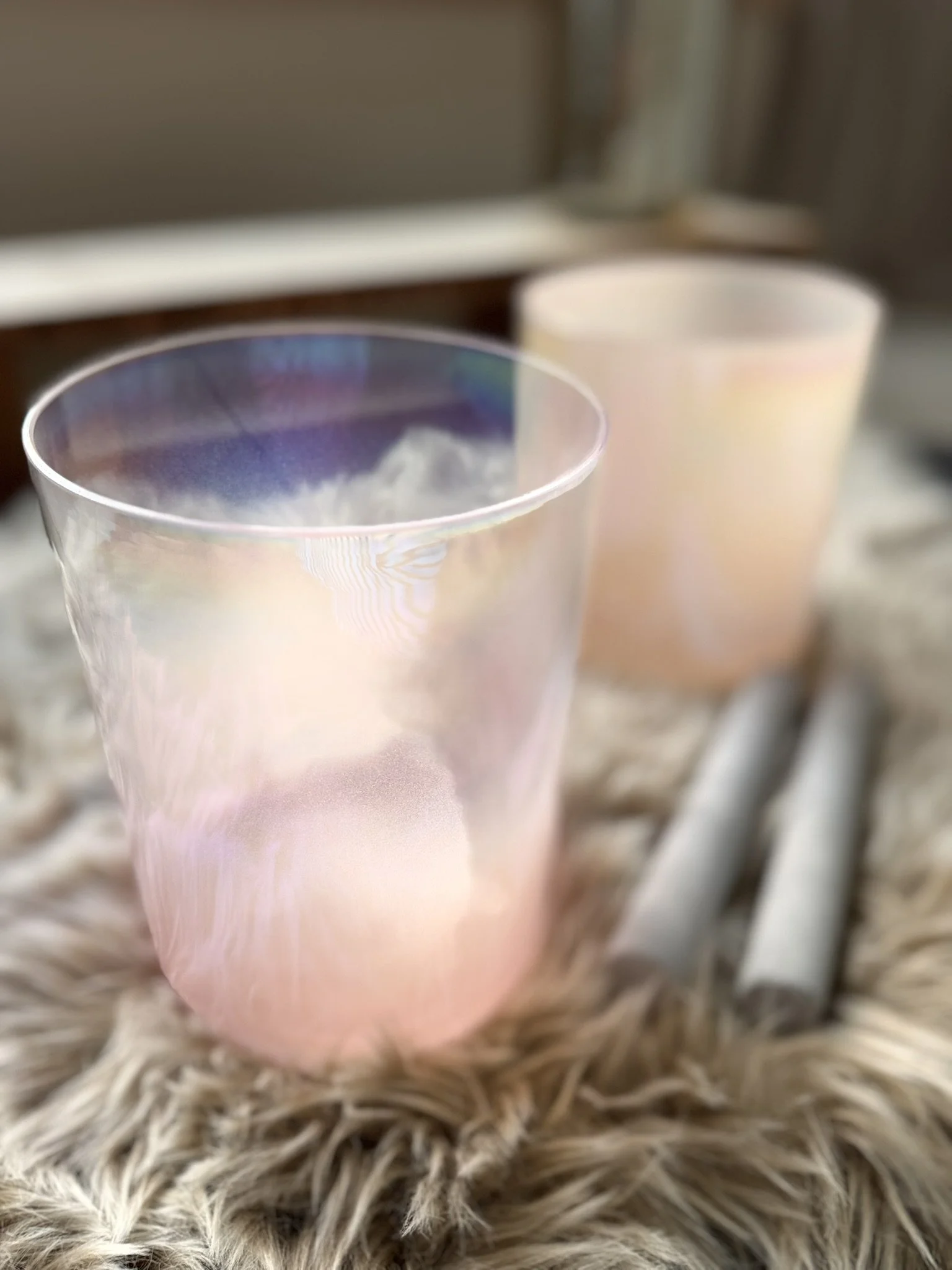 Ein Klangbad mit Kristall-Klangschalen und sanften Tönen